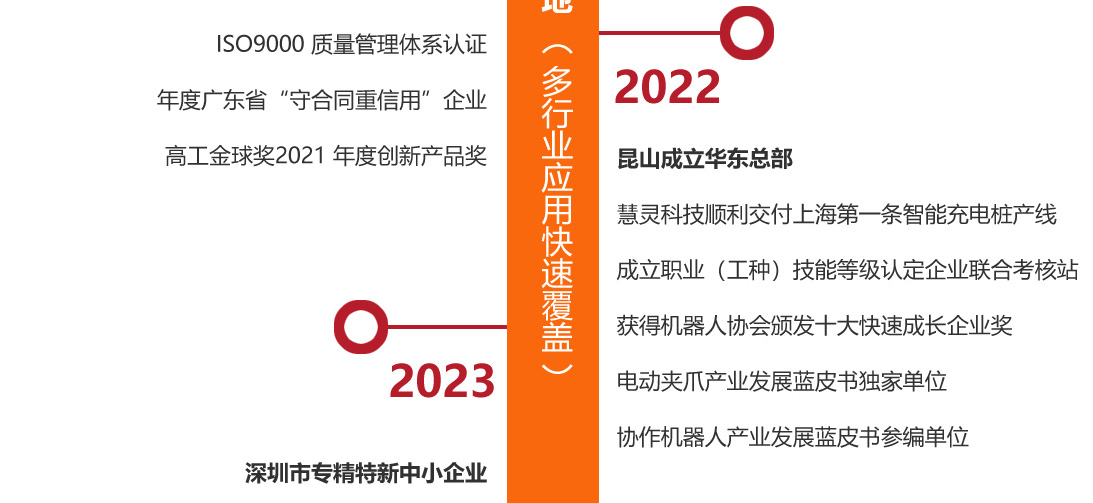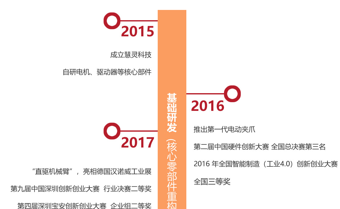 公司簡介 慧靈科技(HITBOT)成立于2015年,小米生態(tài)鏈企業(yè),國家級專精特新“小巨人”企業(yè),致力于以軟件圖形化、硬件模塊化的方式為生命科學(xué)、3C以及新零售等領(lǐng)域提供機(jī)械臂、末端執(zhí)行器、操作系統(tǒng)等軟硬件產(chǎn)品和面向行業(yè)的具身智能基礎(chǔ)設(shè)施解決方案。作為直驅(qū)機(jī)械臂的開創(chuàng)者、電動夾爪行業(yè)的領(lǐng)頭羊、茶飲自動化的推動者,從通用型機(jī)器人產(chǎn)品到行業(yè)專用軟硬件,慧靈科技持續(xù)引領(lǐng)行業(yè)創(chuàng)新發(fā)展,為客戶提供面向場景的具身智能軟硬件基礎(chǔ)設(shè)施,降低具身智能應(yīng)用門檻,讓AI賦能千行百業(yè)。憑借多個(gè)現(xiàn)象級產(chǎn)品,服務(wù)了小米、華為、松下、歐萊雅、邁瑞等數(shù)十個(gè)國家的上千個(gè)客戶。先后獲得極星資本、澤厚資本、唯嘉資本、賽智創(chuàng)投、順為資本、創(chuàng)世伙伴、萬物(博裕)、魔量資本、毅園資本、道合資本等多輪數(shù)億元投資。 1 年成立 0 產(chǎn)品銷量連續(xù)三年穩(wěn)居行業(yè)第一 0 + 發(fā)明專利 0 行業(yè)內(nèi)第一個(gè)使用直驅(qū)技術(shù)的企業(yè) 全球唯一 一家同時(shí)具有末端執(zhí)行器、全系列電動執(zhí)行單元、四、六軸協(xié)作機(jī)械臂等全矩陣產(chǎn)品及自動化操作系統(tǒng),且能給客戶提供全套解決方案的機(jī)器人公司。 播放視頻 慧靈科技(深圳) 慧靈科技(昆山) 慧靈科技(江蘇) 公司榮譽(yù) 企業(yè)榮譽(yù) 國家級小巨人企業(yè) 國家級高新技術(shù)企業(yè) 專精特新企業(yè) 中國機(jī)器人產(chǎn)業(yè)鏈50強(qiáng)公司 技能等級認(rèn)定聯(lián)合考核站 企業(yè)知識產(chǎn)權(quán) 授權(quán)專利367項(xiàng) 產(chǎn)品研發(fā) 自主研發(fā)、技術(shù)創(chuàng)新擁有核心關(guān)鍵技術(shù) 發(fā)展歷程