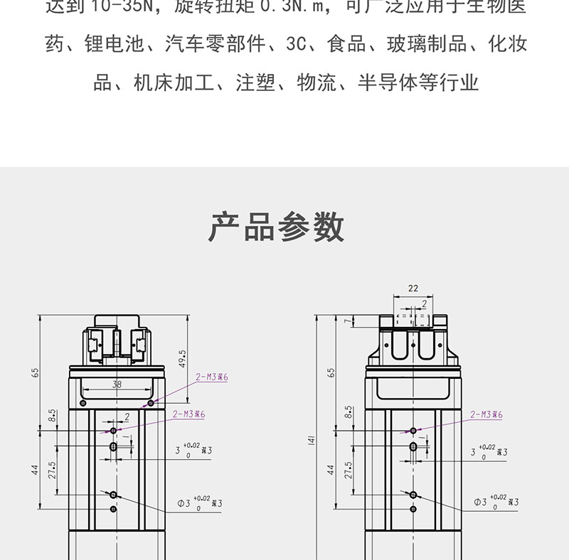 當前夾爪行業大部分市場份額是由氣動夾爪占據,GGII 數據顯示,2021 年中國市場氣動夾爪市場份額約為 96.3%,電動夾爪市場份額約為 3.7%,預計 2022 年電動夾爪市場份額有望突破 6.0%,到 2025 年電動夾爪市場份額有望突破 14.0%,到 2030 電動夾爪市場份額有望突破 50.0%,真正實現與氣動夾爪平分秋色。