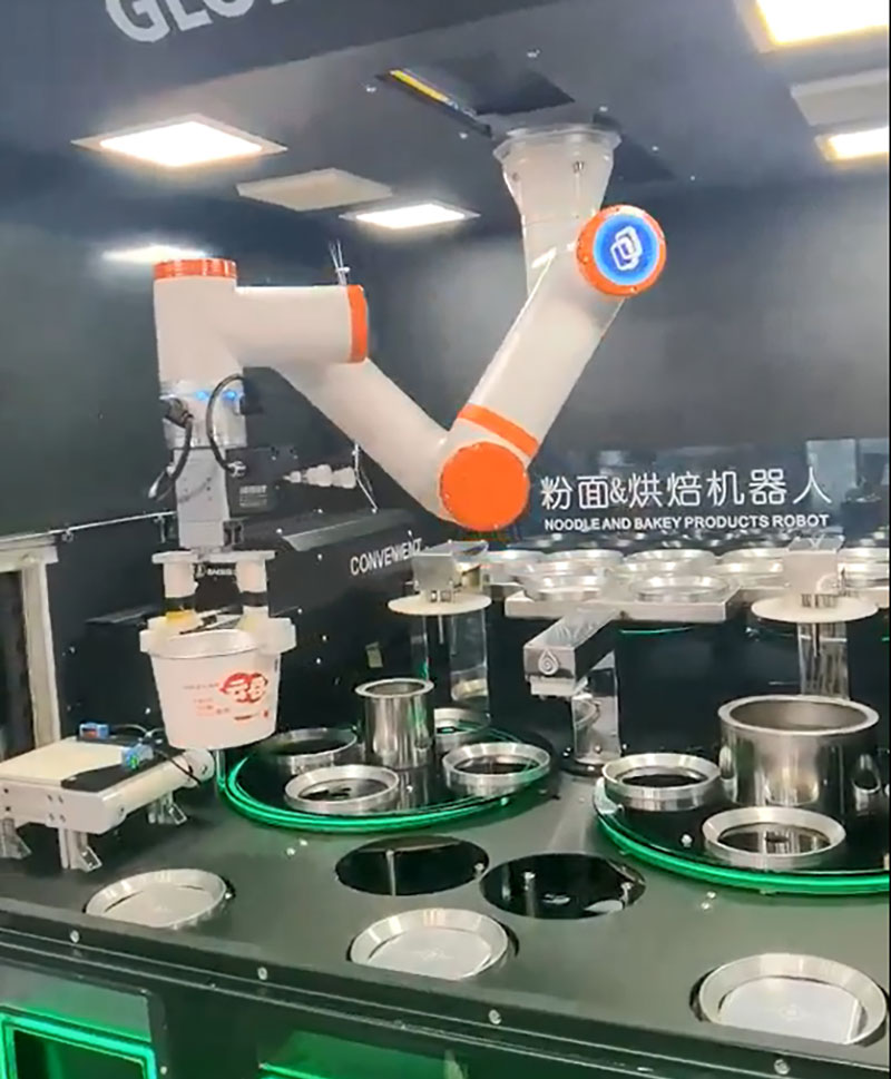 近日,慧靈科技HITBOT推出的六軸機械臂和平行電動夾爪等產品,出現在一臺全自動粉面&烘焙機器,為煮餃子、云吞、面條的傳統方式注入了現代科技的力量。這臺機器結合了先進的六軸機械臂產品和精密的智能控制系統,能夠在短時間內完成面食類的制作和烹飪過程,為用戶帶來極大的便利。