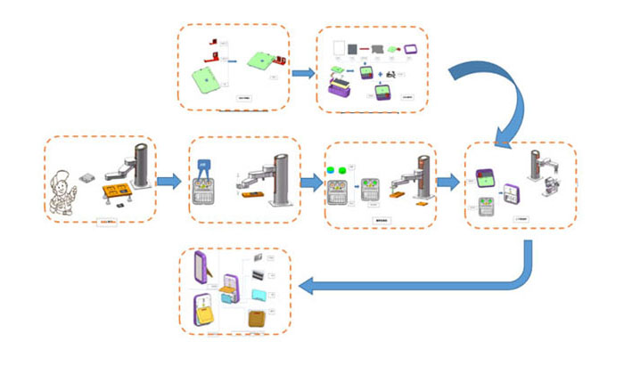個性化溫度計智能制造系統(tǒng), 可以實(shí)現(xiàn)溫度計的小批量、定制化生產(chǎn)。系統(tǒng)通過PC端進(jìn)行生產(chǎn)流程設(shè)計、狀態(tài)監(jiān)測、控制系統(tǒng)監(jiān)控等工作。
