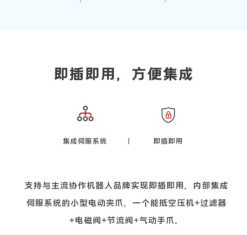 但與此相比,國內(nèi)電動夾爪的市場空間更廣闊。一方面,增量市場(以協(xié)作機器人為代表)持續(xù)放量,將為電動夾爪形成較強的需求拉動力。另一方面,以新能源、半導體、3C電子、生物制造等為代表的制造業(yè)市場,眾多場景開始衍生出電動夾爪替代氣動夾爪的新機會。此外,受疫情影響,以醫(yī)療、食品、零售等為代表的非工業(yè)領域?qū)﹄妱?/p>