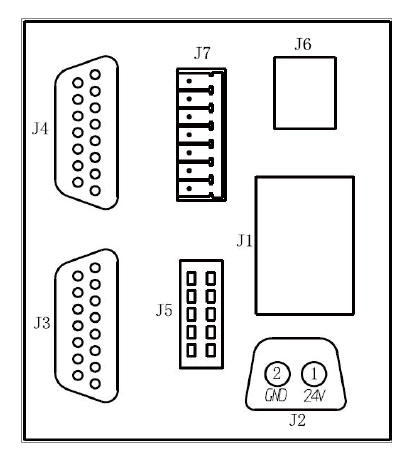⑦ J7為IO擴展口,內部3組共地光耦隔離輸入
