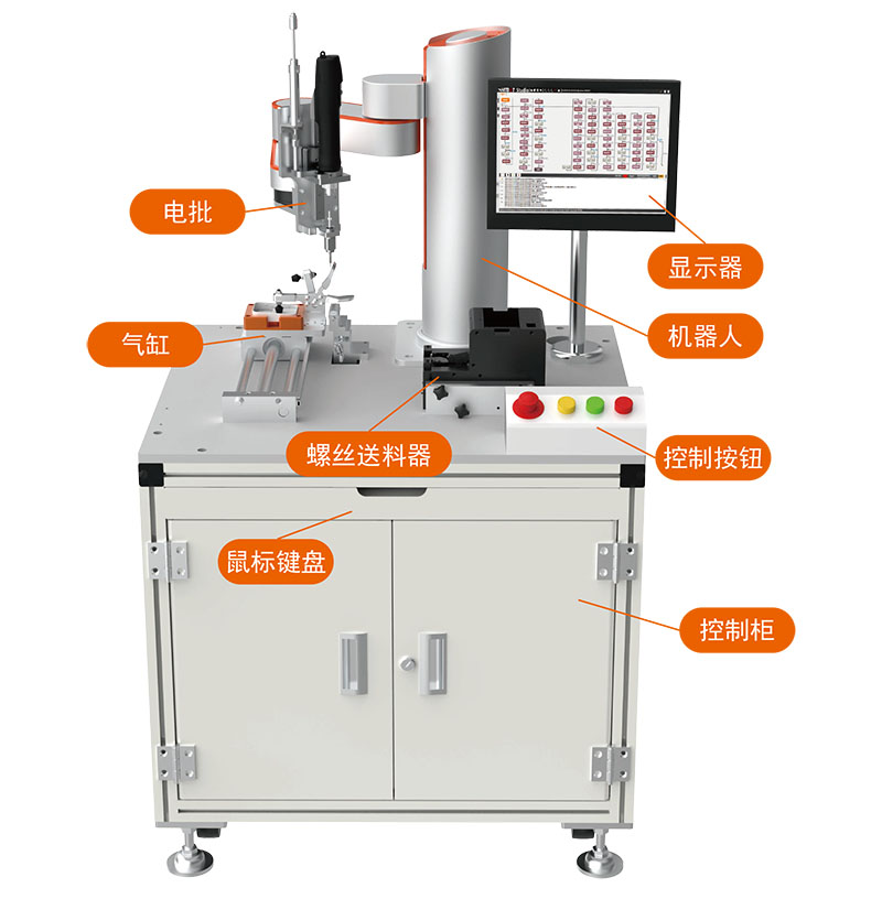 自動鎖螺絲設備用于實現自動鎖螺絲工藝,流程主要有物料定位、物料移動、螺絲定位、自動取螺絲、自動鎖附、扭力檢測、物料歸位