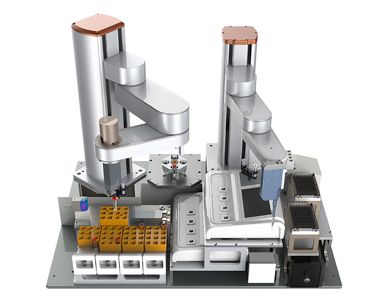 慧靈臨床診斷樣本前置定制化處理系統(tǒng)設(shè)備重量輕、體積小、結(jié)構(gòu)緊湊,設(shè)備節(jié)拍40pcs/小時,夾持力最大80N,采用機器人Z-Arm2442, Z-Arm1832.