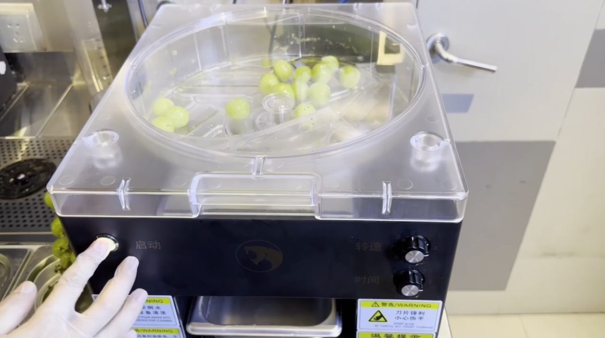 慧靈HITBOT葡萄去皮機(jī)能夠精準(zhǔn)貼合葡萄表面進(jìn)行削皮,削皮均勻且削皮過程中不會浪費(fèi)果肉。高速旋轉(zhuǎn)的刀盤能精準(zhǔn)控制剝皮力度,不損傷果肉,確保了葡萄的完整性和口感。這對于那些注重食材品質(zhì)的果茶飲品店而言,能夠大幅提升產(chǎn)品質(zhì)量。