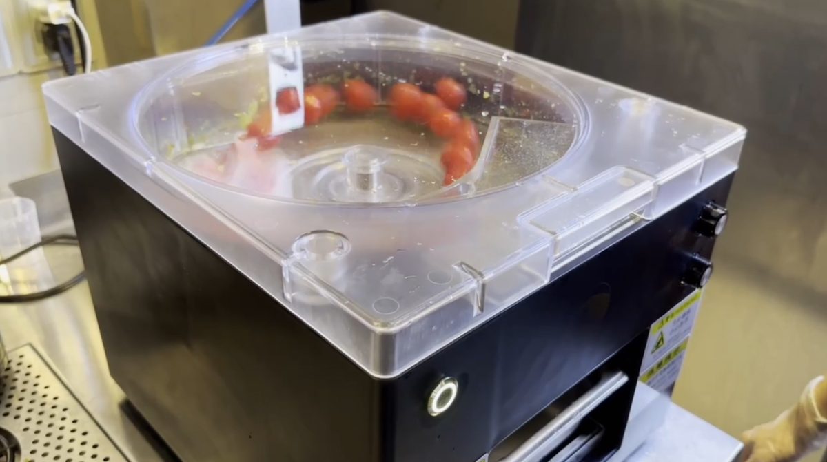 使用慧靈HITBOT去皮機,您只需將圣女果放入機器,設定好時間和轉速,20秒后就能得到一碗光滑誘人的剝皮圣女果。而且,在整個去皮過程中,您無需時刻盯著機器,不僅提高了效率,還避免了因人工剝皮產生的衛生和安全隱患。