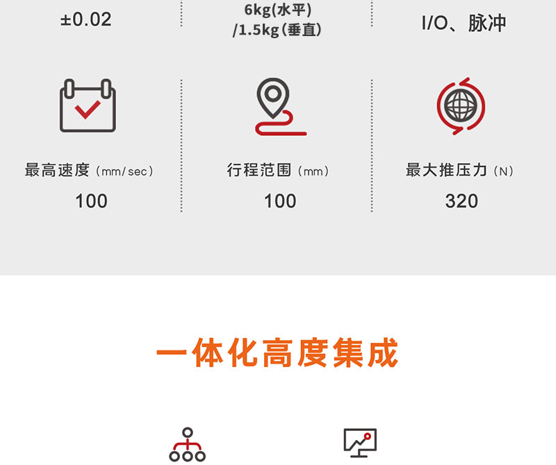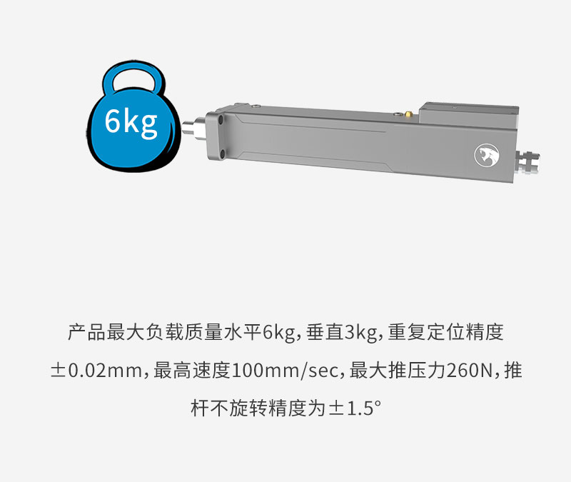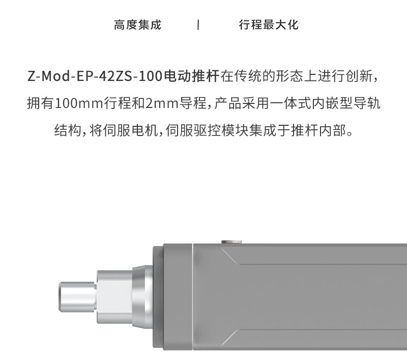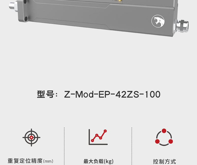 2023年1月6日 Lu, DongWu 智能電缸 0 Z-Mod-EP-42ZS-100 首頁 / 智能電缸 / Z-Mod-EP-42ZS-100 播放視頻 體積小、推力大 、高精度、性價比高驅(qū)動內(nèi)置,簡單易操作末端抗彎能力強(qiáng)力、位置、速度都可以通過Modbus精準(zhǔn)控制長壽命:千萬次循環(huán),超越氣缸控制方式:485、I/O、脈沖 下載3D模型 下載產(chǎn)品手冊 播放視頻 體積小、推力大 、高精度、性價比高驅(qū)動內(nèi)置,簡單易操作末端抗彎能力強(qiáng)力、位置、速度都可以通過Modbus精準(zhǔn)控制長壽命:千萬次循環(huán),超越氣缸控制方式:485、I/O、脈沖 下載3D模型 下載產(chǎn)品手冊 產(chǎn)品描述 資料下載 產(chǎn)品描述 Z-Mod-EP-42ZS-100 核心參數(shù) 2mm 260N? 導(dǎo)程 最大連續(xù)推壓力 100mm ? ? ? ? ? ? ? ? ? ? ? ? ±0.02mm 行程 ? ? ? ? ? ? ? ? ? ? ? ? ? ? ? ? ? ? ? ? ? ? 重復(fù)定位精度 *線框尺寸圖 規(guī)格參數(shù) 詳情 行程 100mm 導(dǎo)程 2mm 最大速度 100mm/s 最大連續(xù)推壓力 260N 最大負(fù)載質(zhì)量 水平:6kg / 垂直:3kg 重復(fù)定位精度 ±0.02mm 力控精度 ±10% 推桿不旋轉(zhuǎn)精度 ±1.5° 推桿末端允許力矩 二指平動 重量 1.5N·m 整機(jī)重量 1.5kg 尺寸規(guī)格 296*42*65mm 控制方式 I/O控制、485總線控制、脈沖控制(脈沖+方向) 工作電壓 DC24V±10% 額定電流 2A 峰值電流 6A 防護(hù)等級 IP40 使用環(huán)境 0~40℃,85% RH以下(不結(jié)霜) 資料下載 點擊下載產(chǎn)品手冊 點擊下載3D圖 點擊下載運(yùn)動范圍圖 Z-Mod-EP-42ZS-100 核心參數(shù) 產(chǎn)品詳細(xì)參數(shù) 行程 100mm 導(dǎo)程 2mm 最大速度 100mm/s 最大連續(xù)推壓力 260N 最大負(fù)載質(zhì)量 水平:6kg / 垂直:3kg 重復(fù)定位精度 ±0.02mm 力控精度 ±10% 推桿不旋轉(zhuǎn)精度 ±1.5° 推桿末端允許力矩 二指平動 重量 1.5N·m 整機(jī)重量 1.5kg 尺寸規(guī)格 296*42*65mm 控制方式 I/O控制、485總線控制、脈沖控制(脈沖+方向) 工作電壓 DC24V±10% 額定電流 2A 峰值電流 6A 防護(hù)等級 IP40 使用環(huán)境 0~40℃,85% RH以下(不結(jié)霜) 產(chǎn)品詳情 相關(guān)產(chǎn)品