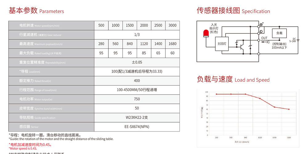 • 導程:100mm(配1/3減速機后導程為33.33)