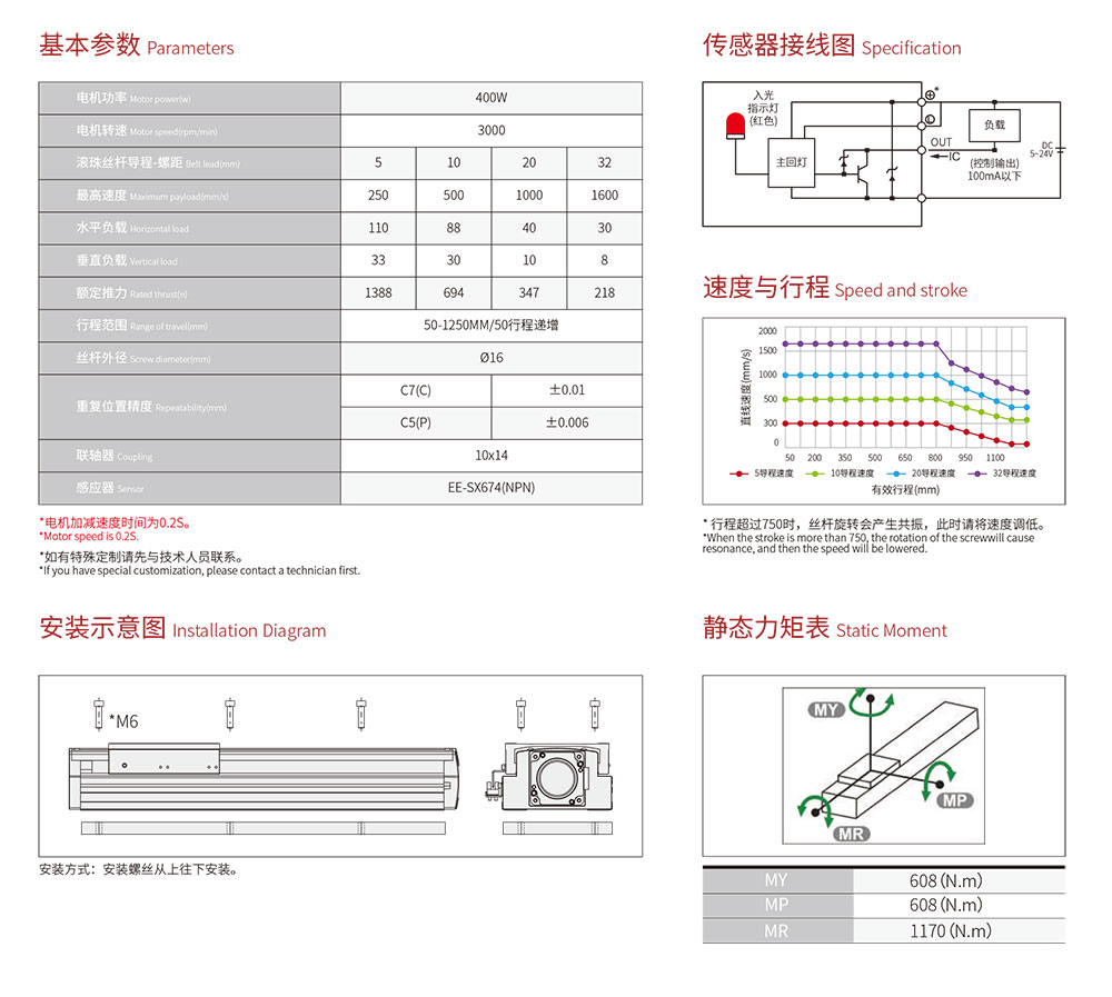 | 滾珠絲桿導(dǎo)程-螺距 Belt lead(mm) |