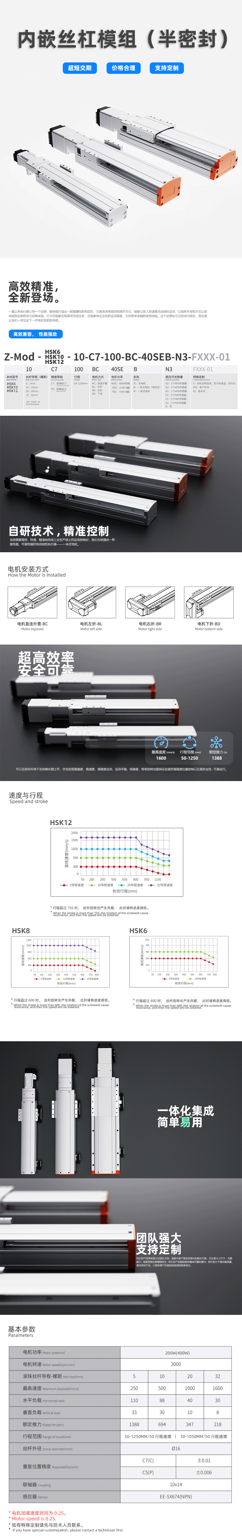 2023年5月23日 Lu, DongWu 智能電缸 0 Z-Mod-HSK8 首頁 / 智能電缸 / Z-Mod-HSK8 電機功率:200W(400W)絲桿外徑:16mm電機轉速:3000(rpm/min)重復定位精度:±0.006mm行程范圍:50-1050mm(50mm行程遞增)? 下載3D模型 下載產品手冊 電機功率:200W(400W)絲桿外徑:16mm電機轉速:3000(rpm/min)重復定位精度:±0.006mm行程范圍:50-1050mm(50mm行程遞增)? 下載3D模型 下載產品手冊 產品描述 資料下載 產品描述 Z-Mod-HSK8 核心參數 200W(400W) ?3000RPM 電機功率 ? 電機轉速 16mm ? ? ? ? ? ? ? ? ? ?50~1050mm ?絲杠外徑 ? ? ? ? ? ? ? ? ? ? ? ? ? ? ? ? ?行程范圍 *線框尺寸圖 規格參數 型號性能 電機功率 Motor power(w) 200W(400W) 電機轉速 Motor speed(rpm/min) 3000 滾珠絲桿導程-螺距 Belt lead(mm) 5 10 20 最高速度 Maximum payload(mm/s) 250 500 1000 水平負載 Horizontal load 50 40 20 垂直負載 Vertical load 20 15 6 額定推力 Rated thrust(n) 683 341 174 行程范圍 Range of travel(mm) 50-1050MM/50行程遞增 絲桿外徑 Screw diameter(mm) ?16 重復位置精度 Repeatability(mm) C7(C) ±0.01 C5(P) ±0.006 聯軸器 Coupling 10×14 感應器 Sensor EE-SX674(NPN) 資料下載 點擊下載產品手冊 點擊下載3D圖 點擊下載運動范圍圖 Z-Mod-HSK8 核心參數 規格參數 型號性能 電機功率 Motor power(w) 200W(400W) 電機轉速 Motor speed(rpm/min) 3000 滾珠絲桿導程-螺距 Belt lead(mm) 5 10 20 最高速度 Maximum payload(mm/s) 250 500 1000 水平負載 Horizontal load 50 40 20 垂直負載 Vertical load 20 15 6 額定推力 Rated thrust(n) 683 341 174 行程范圍 Range of travel(mm) 50-1050MM/50行程遞增 絲桿外徑 Screw diameter(mm) ?16 重復位置精度 Repeatability(mm) C7(C) ±0.01 C5(P) ±0.006 聯軸器 Coupling 10×14 感應器 Sensor EE-SX674(NPN) 產品詳情 相關產品