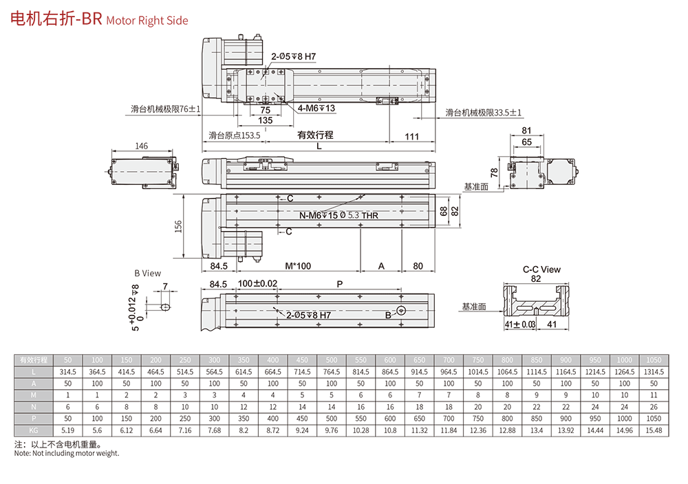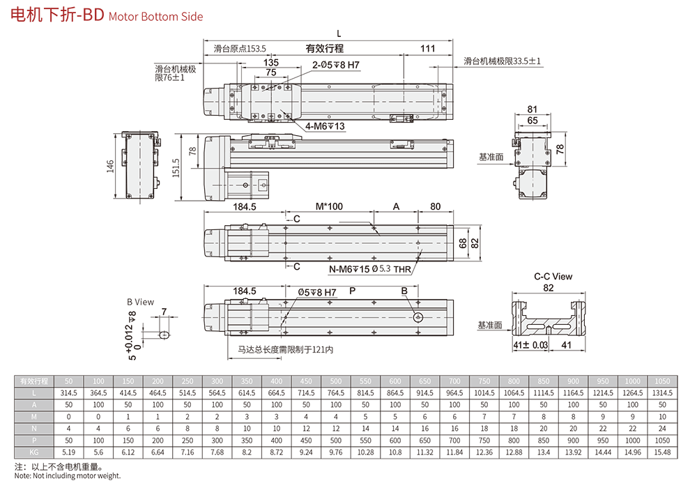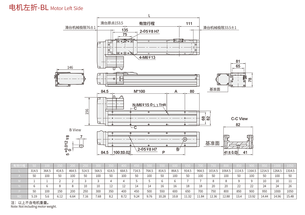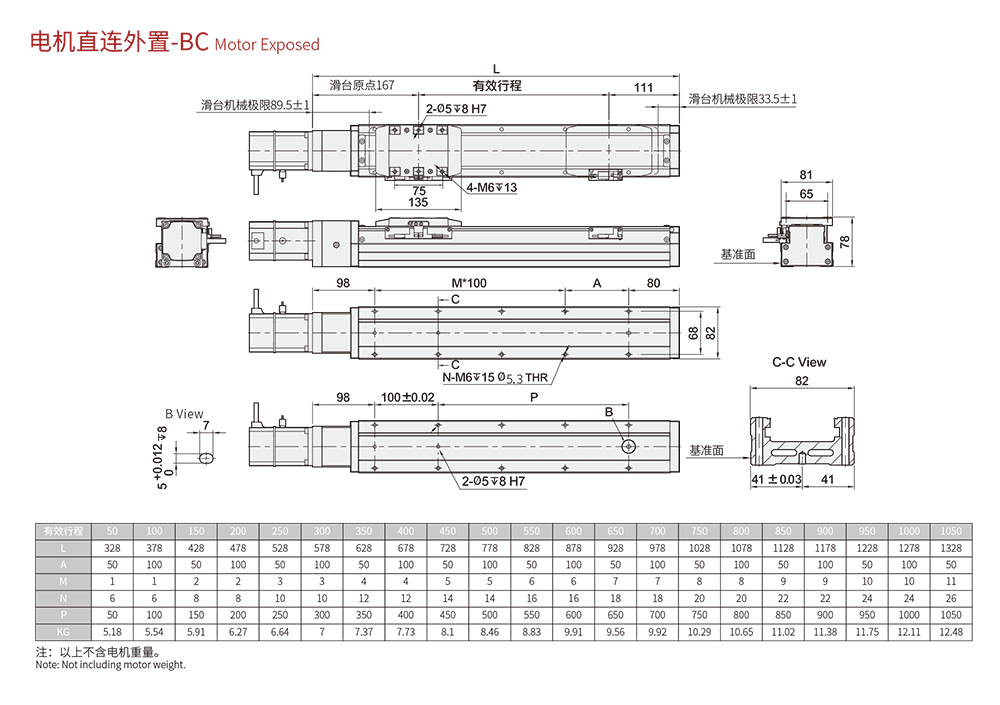 行程范圍 Range of travel(mm) 50-1050MM/50行程遞增