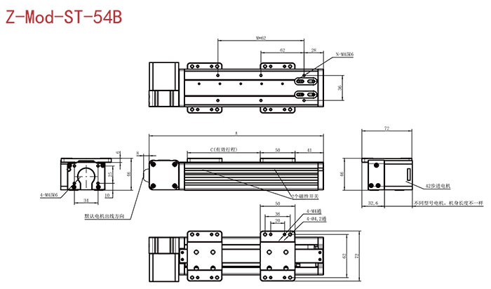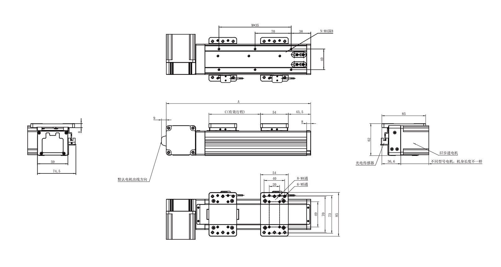 2022年9月23日 Lu, DongWu 智能電缸 0 Z-Mod-ST-59B 首頁 / 智能電缸 / Z-Mod-ST-59B 最高速度:水平:370mm/s(1.5kg負載),垂直:300mm/s(1.5kg負載)最大可搬重量 水平/壁掛: 6kg垂直: 4kg額定推力:100N(水平)重復定位精度:±0.03mm 下載3D模型 下載產品手冊 最高速度:水平:370mm/s(1.5kg負載),垂直:300mm/s(1.5kg負載)最大可搬重量 水平/壁掛: 6kg垂直: 4kg額定推力:100N(水平)重復定位精度:±0.03mm 下載3D模型 下載產品手冊 產品描述 資料下載 產品描述 Z-Mod-ST-59B 核心參數 54mm 100N (水平) 導程 額定推力 100~800mm 6KG 行程范圍 有效負載 *線框尺寸圖 規格參數 型號性能 電機功率/電壓 HL57CM23 (對標雷賽57CM23) 額定扭矩( N.m ) 參考曲線性能圖 導程(mm) 54 最高速度(mm/sec) 水平:370(1.5kg?負載) 垂直:300(1.5kg 負載) 額定加速 / / 最大可搬重量(水平/壁掛)(kg) 6 垂直 4 額定推力(N) 100 (水平) 行程范圍 100-800 ( 100 間隔) 馬達額定轉速(RPM) 參考曲線性能圖 注: 1G=9800mm/sec2,最高速度只做參考,負載與速度成反比 通用規格 重復定位精度 ±0.03mm 驅動方式 同步帶(進口鋼絲聚氨酯) 動態容許力矩(注1) Ma:100N.m, Mb:100N.m, Mc:130N.m 負荷允許伸出長度 200mm 傳感器 / 感應器線纜長度 1.5m 基座材質 擠壓鋁型材,黑色光澤 安裝面積精度要求 平面度0.05mm以下 使用環境 0-40℃, 85%RH(無結霜) 注1:行走壽命為10000km時的數值 尺寸圖代號說明 ? 質量; 單位:mm 有效行程 100 200 300 400 500 600 700 800 A 280 380 480 580 680 780 880 980 C 100 200 300 400 500 600 700 800 ?M 2 4 5 7 8 10 11 13 N 6 ?10 12 16 18 22 24 28 ?質量(kg) 2.4 2.76 3.12 3.48 3.84 4.2 4.56 4.92 資料下載 點擊下載產品手冊 點擊下載3D圖 點擊下載運動范圍圖 Z-Mod-ST-54B 核心參數 產品詳細參數 步進電機規格型號HL42CM06(對標雷賽42CM06)額定扭矩(N·m)參考曲線性能圖導程(mm)54最高速度(mm/sec)水平:300(1.5kg負載)垂直:220(1.5kg負載)額定加速度 (mm/sec2)//最大可搬重量 水平/壁掛(kg)4垂直1.5額定推力(N)30(水平)行程范圍(mm)100-500(100間隔)馬達額定轉速(RPM)參考曲線性能圖注:1G=9800mm/sec2 最高速度只做參考,負載與速度成反比。重復定位精度±0.03mm驅動方式同步帶(進口鋼絲聚氨酯)動態容許力矩(注1)Ma:34.7N·m,Mb:34.7N·m,Mc:55.6N·m負荷允許伸出長度120mm傳感器/感應器線纜長度1.5m基座材質擠壓鋁型材,黑色光澤安裝面積精度要求平面度0.05mm以下使用環境0-40°C, 85%RH](無結霜)注1:行走壽命為10000km時的數值 規格參數 型號性能 電機功率/電壓 HL42CM06 (對標雷賽42CM06) 額定扭矩( N.m ) 參考曲線性能圖 導程(mm) 54 最高速度(mm/sec) 水平:300(1.5kg?負載) 垂直:220(1.5kg 負載) 額定加速 / / 最大可搬重量(水平/壁掛)(kg) 4 垂直 1.5 額定推力(N) 30 (水平) 行程范圍 100-500 ( 100 間隔) 馬達額定轉速(RPM) 參考曲線性能圖 注: 1G=9800mm/sec2,最高速度只做參考,負載與速度成反比 通用規格 重復定位精度 ±0.03mm 驅動方式 同步帶(進口鋼絲聚氨酯) 動態容許力矩(注1) Ma:34.7N.m, Mb:34.7N.m, Mc:55.6N.m 負荷允許伸出長度 120mm 傳感器 / 感應器線纜長度 1.5m 基座材質 擠壓鋁型材,黑色光澤 安裝面積精度要求 平面度0.05mm以下 使用環境 0-40℃, 85%RH(無結霜) 注1:行走壽命為10000km時的數值 尺寸圖代號說明 ? 質量; 單位:mm 有效行程 100 200 300 400 500 A 251 351 451 551 651 C 100 200 300 400 500 ?M 2 4 5 7 8 N 6 ?10 12 16 18 ?質量(kg) 1.6 1.9 2.2 2.5 2.8 產品詳情 相關產品