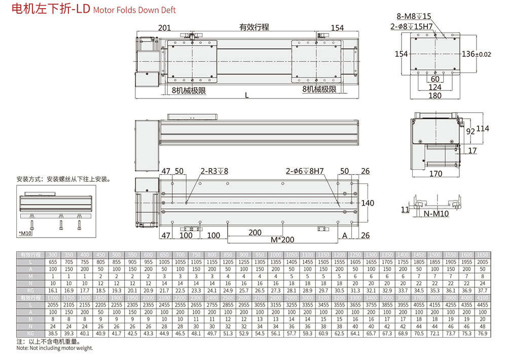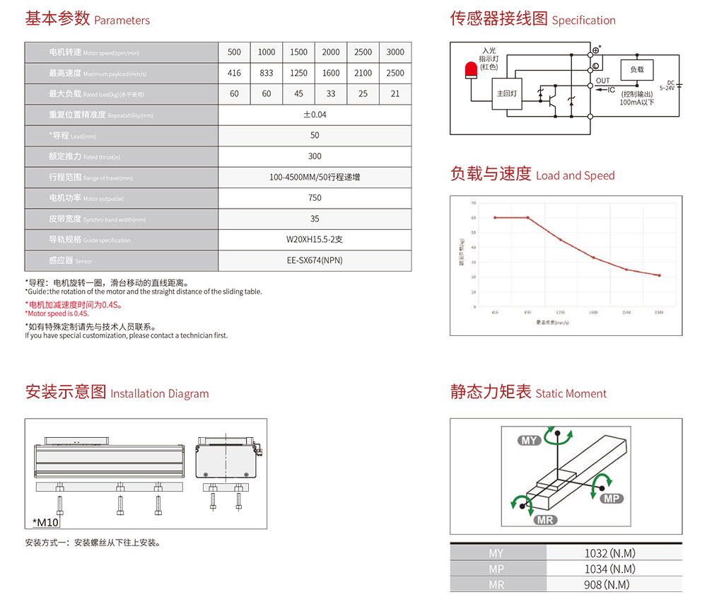 行程范圍 Range of travel(mm) 100-4500MM/50行程遞增